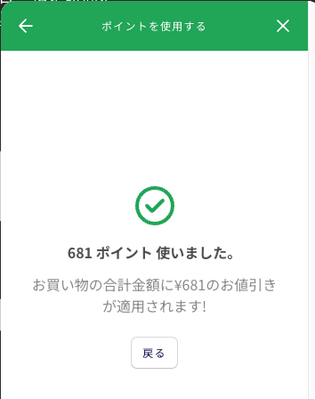 ※ここでは「⚪︎ポイントを使いました」と表示されていますが、実際に使用される場面は決済時です。